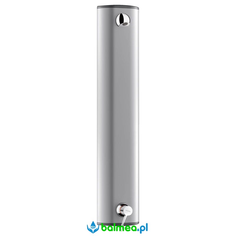 Panel prysznicowy naścienny z aluminium anodowanego. Bateria z dźwignią regulacji temperatury od wody zimnej do 39°C. Posiada funkcję antyoparzeniową oraz zimnemu prysznicowi. Możliwość przeprowadzenia dezynfekcji termicznej. Wylewka posiada automatyczny regulator wypływu ustawiony na 6 l/min przy 3 barach. Wandaloodporna wylewka chromowana z antyosadowym dyfuzorem.