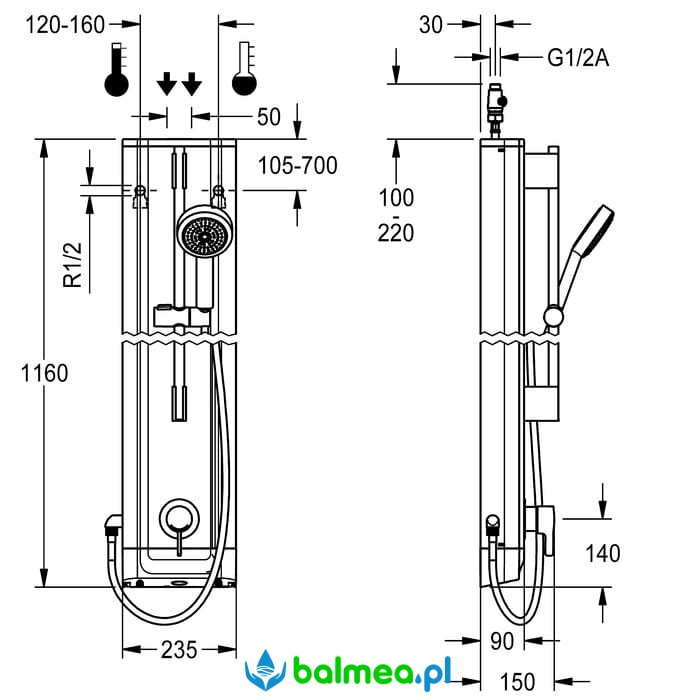 Wymiary obudowy 235 x 1160 x 90 mm (szerokość x wyokość. x głębokość)