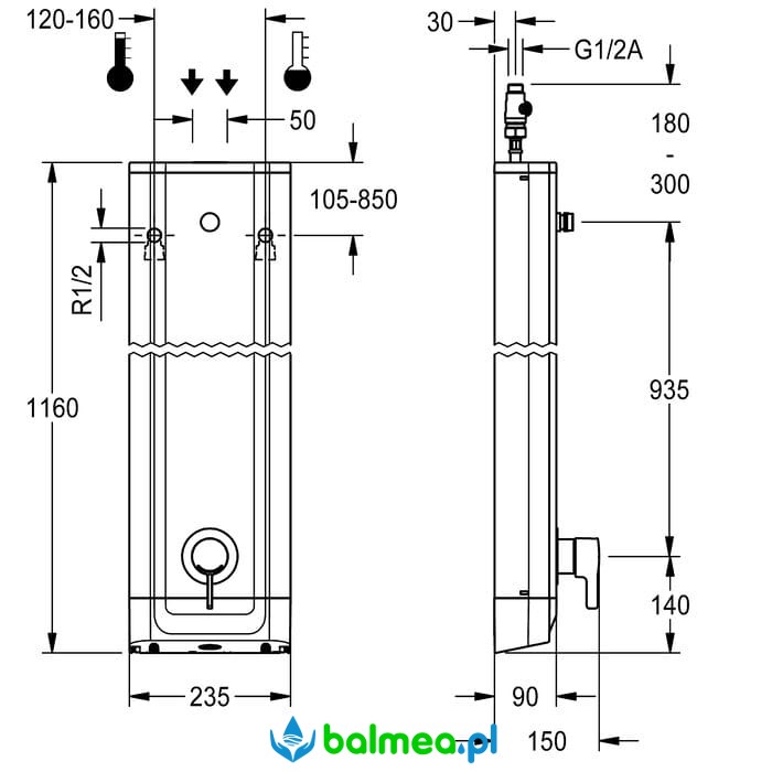 Wymiary obudowy 235 x 1160 x 90 mm (szer. x wys. x gł.)