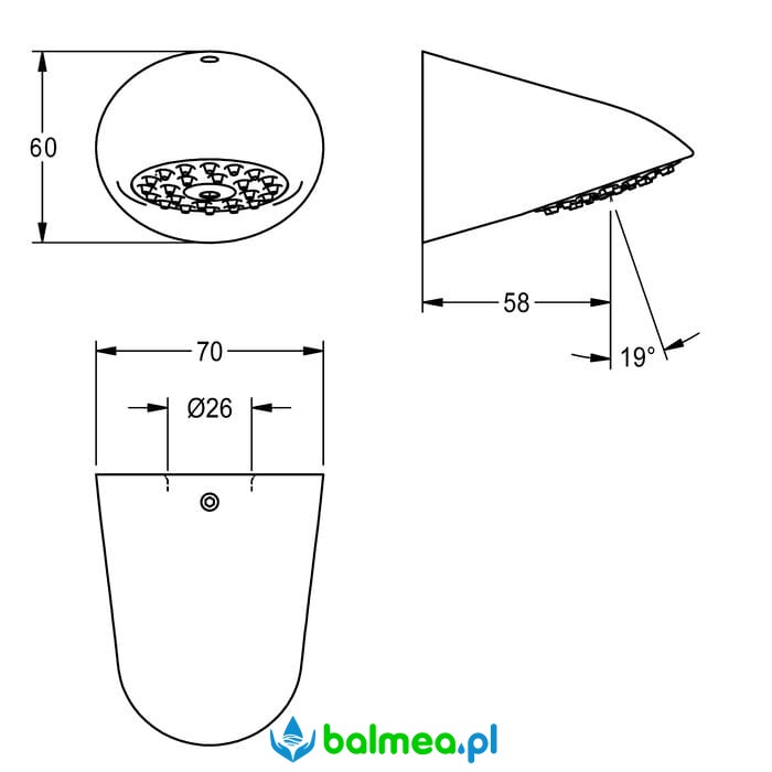 Głowica natryskowa AQUAJET-Slimline z systemem zapobiegającym osadzaniu się kamienia o niskim stopniu tworzenia się aerozoli. Mosiądz polerowany chromowany z sitkiem strumieniowym z tworzywa sztucznego.