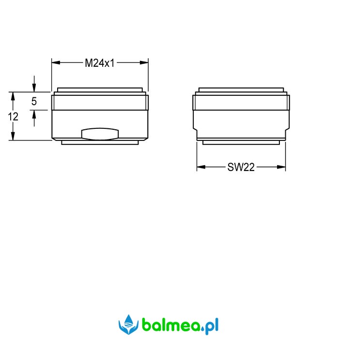 Perlator do armatury umywalkowej z gwintem M24 x 1, wyposażony w zintegrowany regulator przepływu o wydajności 3,0 l/min.