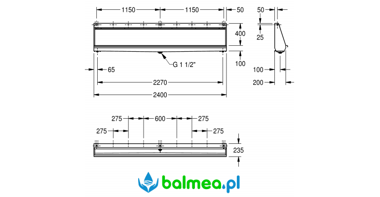 Wymiary: 2400 x 515 x 235 mm (szer. × wys. × głęb.)
