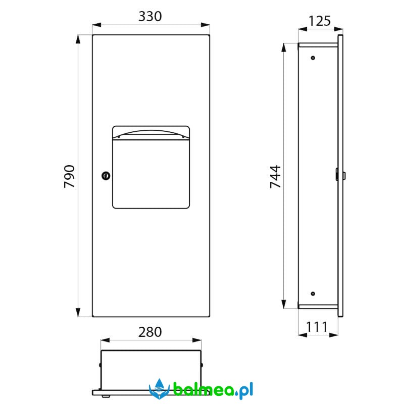 Pojemnik na ręczniki papierowe mieści od 400 do 600 pojedynczych listków papieru, natomiast kosz na odpady ma pojemność 10 litrów.