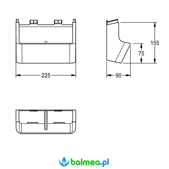 Półka na żel pod prysznic do paneli natryskowych F5 o wymiarach 225 × 153 × 89 mm