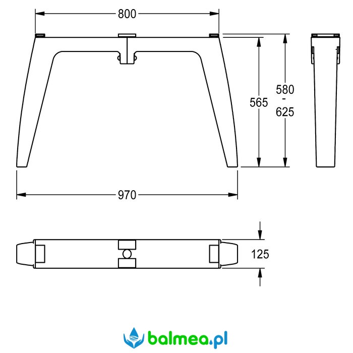 Półnoga mostowa o wymiarach 125 × 565 × 970 mm