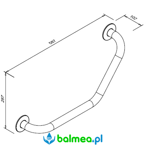 wykonana ze stali nierdzewnej matowej o długości 2 x 30 cm i kącie 130°. Do montażu na ścianie obok sedesu, dla łatwiejszego poruszania się osób niepełnosprawnych. Utrzymuje obciążenie do 120 kg. Komplet zawiera wszystkie elementy montażowe.