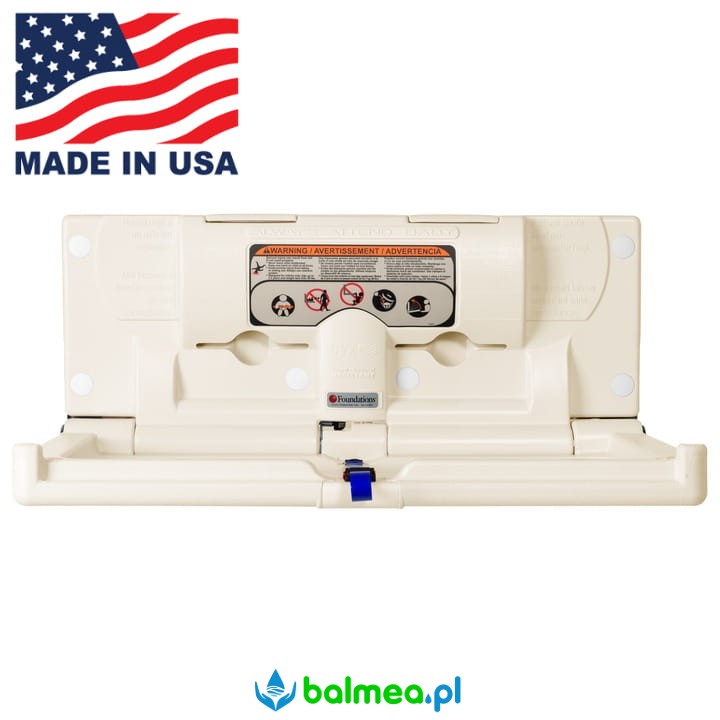 Wyprodukowany w USA przewijak dla niemowląt i dzieci, wykonany z wysokiej jakości antybakteryjnego polietylenu. Dzięki blokowaniu otwarcia powyżej 90 stopni przez stalowe zawiasy wytrzymuje ciężar 113 kilogramów! Testowany na zgodność z międzynarodowymi normami bezpieczeństwa dzieci i normami materiałowymi w tym amerykańską ASTM F2285 i europejskie EN 12221-09 + A1:2013 oraz EN 71-3. Całkowicie antybakteryjny i wolny od szkodliwych substancji. Przeszedł atestację zgodności z normą REACH oraz CPSIA.