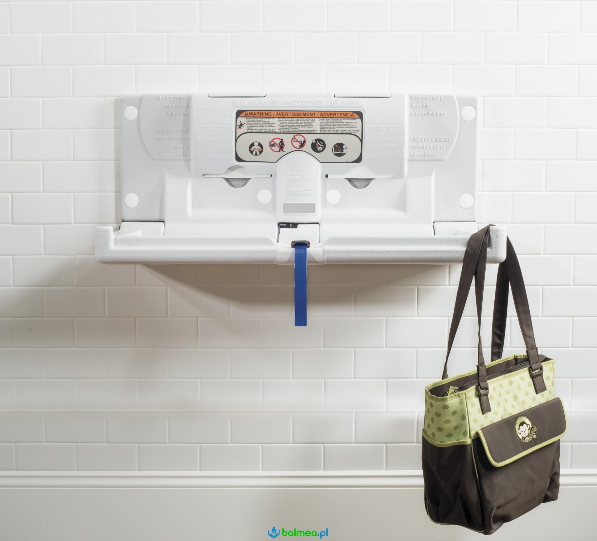 Idealnie sprawdzi się w toaletach publicznych, pomieszczeniach socjalnych, przychodniach, szpitalach, żłobkach to jest w wszelkich obiektach użyteczności publicznej a nawet w domowej łazience. Bardzo praktyczny i funkcjonalny: łatwo rozkładany można to zrobić jedną ręką. Posiada nienasiąkliwy antybakteryjny pas zabezpieczający dziecko przed upadkiem, wyprofilowane wklęsłe podłoże oraz specjalny wyprofilowany uchwyt umożliwiający zawieszenie torby. Wyposażony jest w dwa zintegrowane pojemniki na chusteczki lub podkłady. Przewijak spełnia wymogi ADA i jest przystosowany jest do montażu w toaletach dla osób niepełnosprawnych.