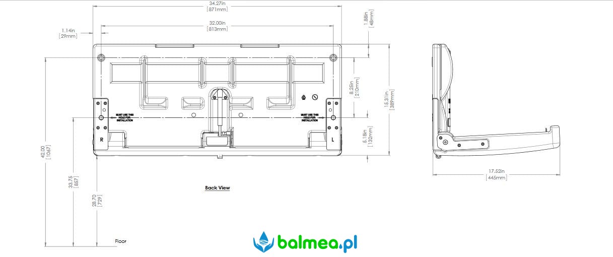 Przewijak ścienny dla niemowląt Balmea składany poziomo