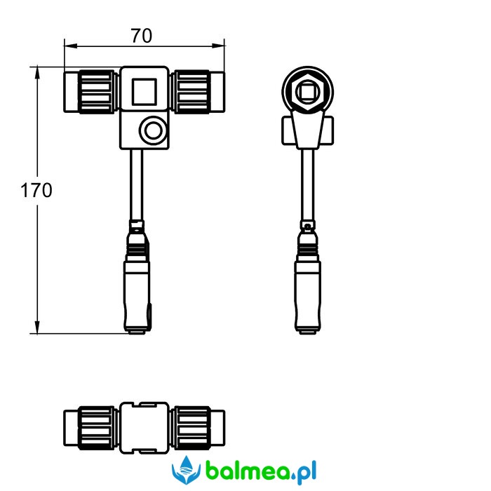 Rozdzielacz elektryczny typu T ZAQUA075 przeznaczony do systemu A3000 open, umożliwiający połączenie modułu elektronicznego z kablem systemowym.