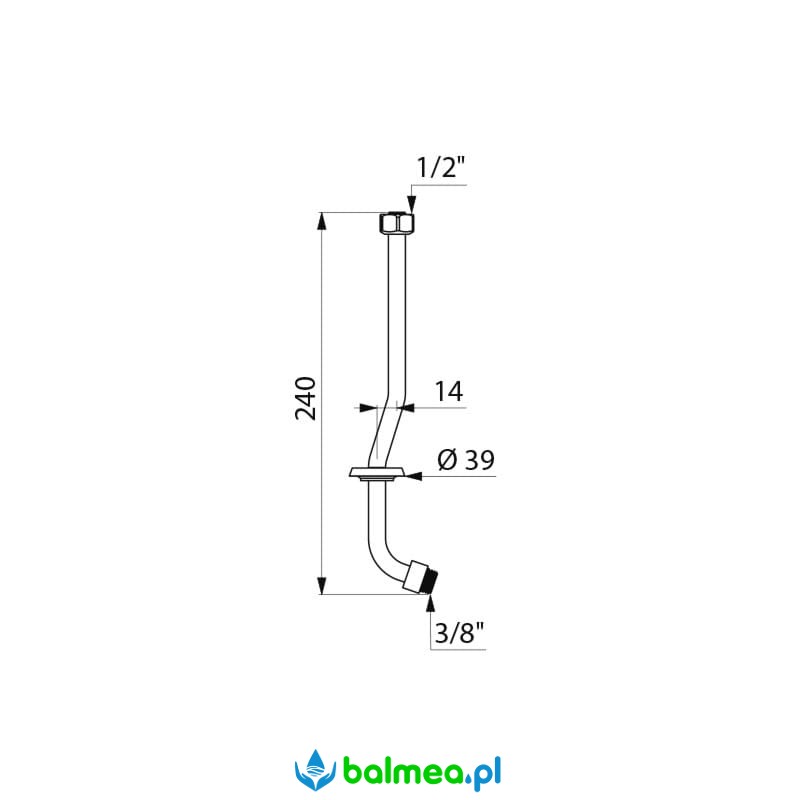 Zasilająca rurka do pisuaru DELTA. Przyłącze W1/2". Wysokość 240 mm. Pasuje do armatury natynkowej TEMPOMATIC 4, TEMPOMATIC 3, TEMPOSOFT, TEMPOSTOP.