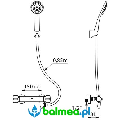 W skład zestawu wchodzi słuchawka natryskowa (nr 813) oraz chromowany, ruchomy uchwyt ścienny (nr 845). Zastosowano również złączkę antystagnacyjną WZ1/2" (nr 880), umożliwiającą automatyczne opróżnianie węża i słuchawki natryskowej poprzez montaż między dolnym przyłączem armatury a wężem natryskowym.