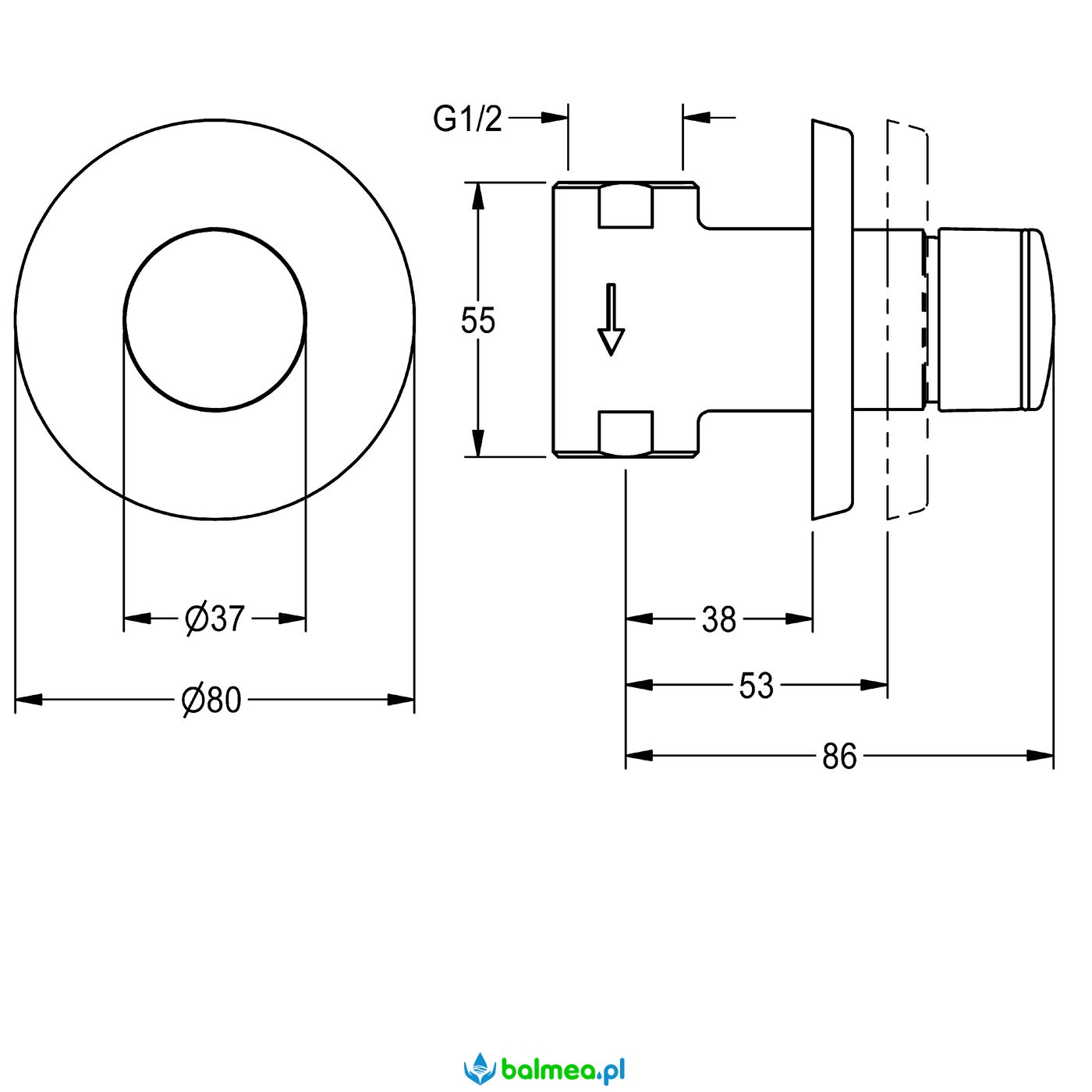 Obudowa z wymiennym gniazdem zaworu przełączającego wyposażona jest w gwint wewnętrzny G 1/2. Widoczne elementy wykonane z polerowanego mosiądzu z trwałą powłoką chromowaną zapewniają estetyczne wykończenie i odporność na intensywną eksploatację. W komplecie znajduje się rozeta z regulacją głębokości montażu w zakresie 15 mm, umożliwiająca precyzyjne dopasowanie do grubości ściany.
