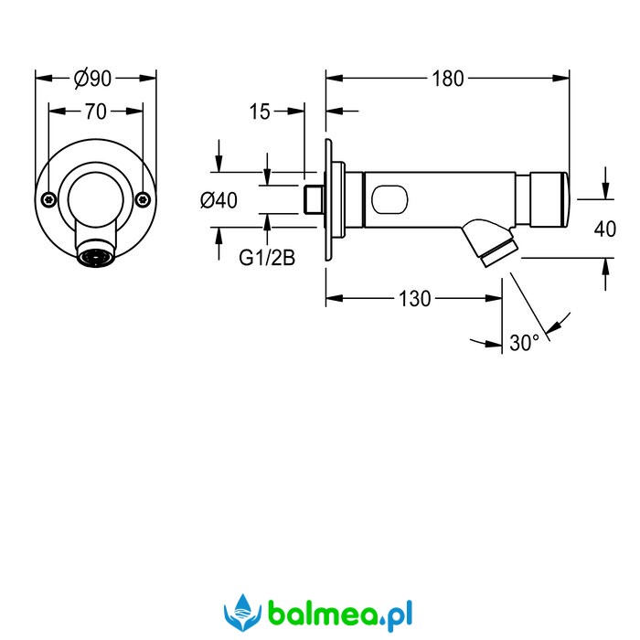 Wyposażona w hydraulicznie sterowany kartusz samozamykający, z automatycznym zamknięciem w przypadku ciągłego uruchomienia (funkcja ABS2) oraz regulacją czasu wypływu wody. Przeznaczona do podłączenia do wstępnie zmieszanej wody ciepłej lub zimnej.