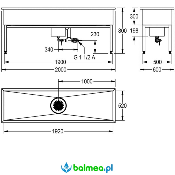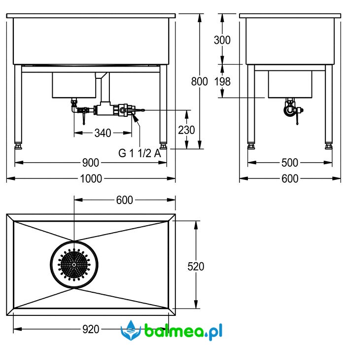 Wymiary niecki: 920 x 300 x 520 mm (szer. x wys. x głęb.)