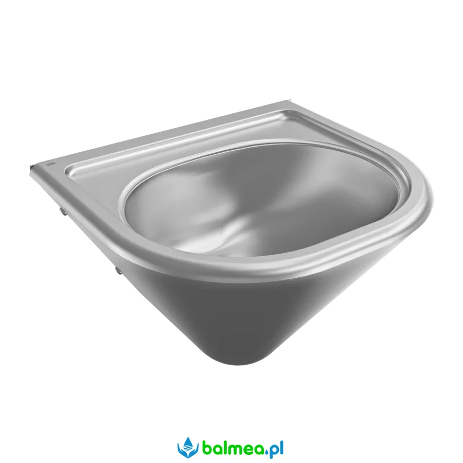 Przystosowana do wandaloodpornego montażu za pomocą gwintowanych prętów od strony pomieszczenia serwisowego. Komora wspawana bezspoinowo, bez przelewu. Wyposażona w półkę armaturową o głębokości 40 mm, odpływ sitkowy G 1 1/2 B oraz ukryty syfon G 1 1/4 B. Wytłoczone wgłębienie na mydło. W komplecie zestaw montażowy.
