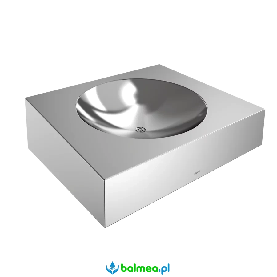 Przystosowana do wandaloodpornego montażu za pomocą gwintowanych prętów od strony pomieszczenia serwisowego. Zamknięta ze wszystkich stron obudowa z bezspoinowo wspawaną, okrągłą komorą. Wspawany bezspoinowo odpływ sitkowy z rurą odpływową DN 32. Syfon montowany od strony pomieszczenia serwisowego (należy zakupić osobno). W komplecie zestaw montażowy.