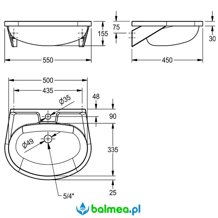 Model wyposażony jest w półkę na armaturę o głębokości 90 mm z otworem montażowym 35 mm. Umywalka nie posiada przelewu. Odpływ sitkowy G 1 1/4 B z tylnym, środkowym wylotem zapewnia sprawne odprowadzanie wody. Dodatkowym atutem jest wytłoczone wgłębienie na mydło, zwiększające funkcjonalność produktu.