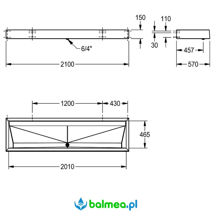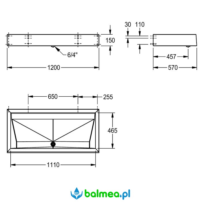 Wymiary (szer. × wys. × głęb.): 1200 × 150 × 570 mm.