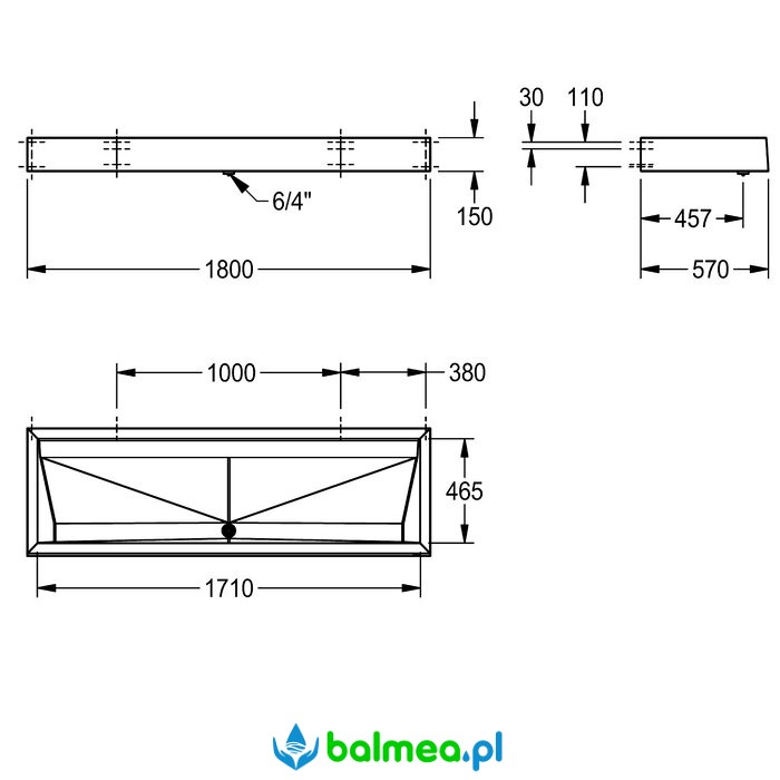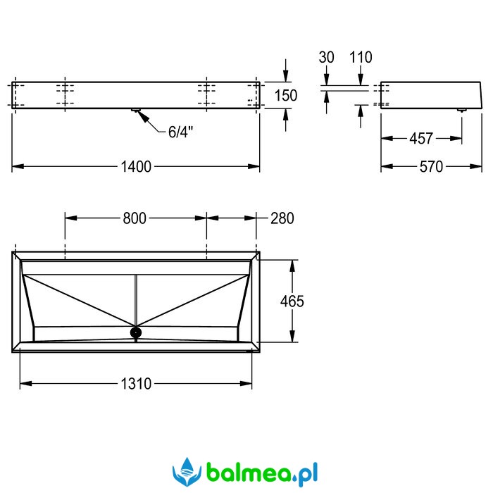 Wykonana ze stali szlachetnej o powierzchni szlifowanej matowej i grubości materiału 1,2 mm, zapewnia wysoką trwałość oraz odporność na uszkodzenia mechaniczne. Głębokość komory (odległość czoła od ścianki tylnej) wynosi 570 mm. Okalający fartuch o wysokości 150 mm zwiększa ochronę przed rozchlapywaniem wody.