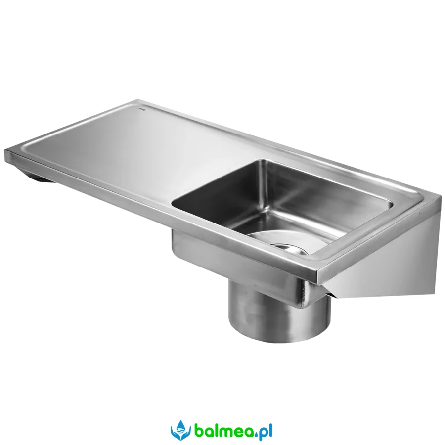 Wykonany ze stali szlachetnej o matowej, szlifowanej powierzchni i grubości materiału 1,5 mm, zapewnia wysoką trwałość i odporność na intensywne użytkowanie. Bezspoinowo wspawana niecka o wymiarach 450 x 500 x 150 mm gwarantuje szczelność i łatwość utrzymania czystości. Niecka oraz ociekacz otoczone są profilowaną krawędzią zwiększającą sztywność konstrukcji.