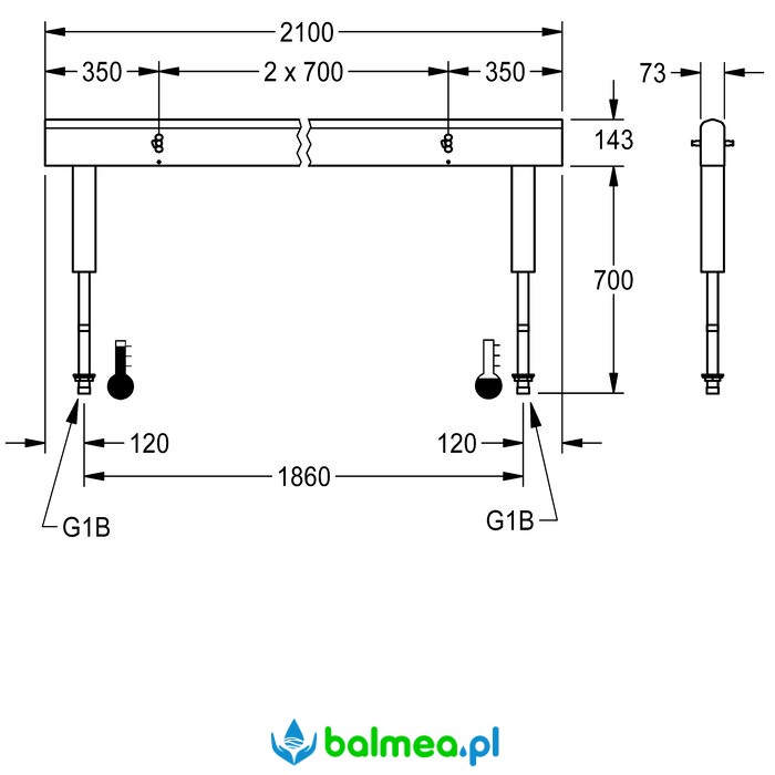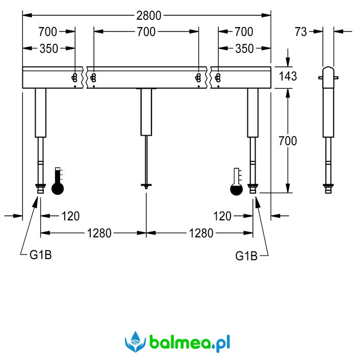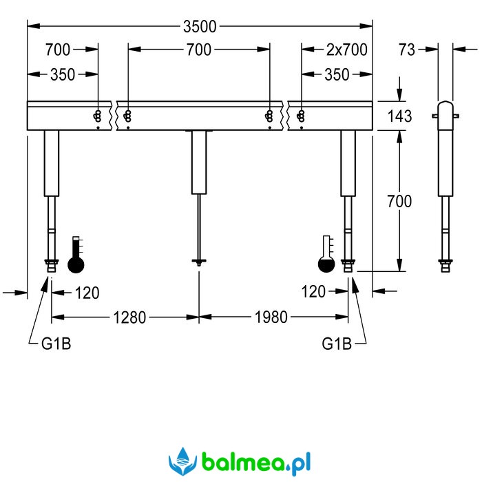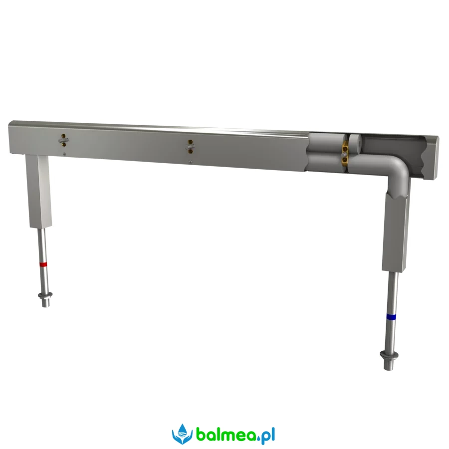 Zestaw wyposażony jest w fabrycznie zamontowane bloki podłączeniowe armatury oraz orurowanie ze stali szlachetnej. Dodatkowo przewidziano możliwość doprowadzenia zasilania elektrycznego dla baterii elektronicznych, co zwiększa elastyczność konfiguracji systemu.