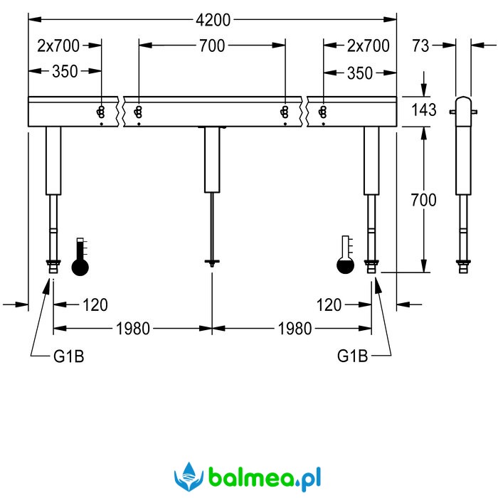 Wymiary obudowy: 4200 × 470 × 73 mm (szer. × wys. × gł.)