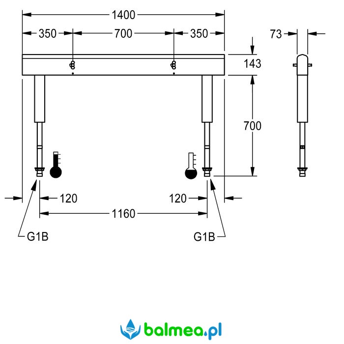 Podłączenie do ciepłej i zimnej wody realizowane jest od spodu, w oparciu o prowadnikowe wsporniki rur, co zapewnia stabilną konstrukcję oraz estetyczne i uporządkowane prowadzenie instalacji. Obudowa wykonana jest ze stali szlachetnej o matowym, szlifowanym wykończeniu, gwarantującym trwałość, odporność na uszkodzenia oraz łatwość utrzymania w czystości.