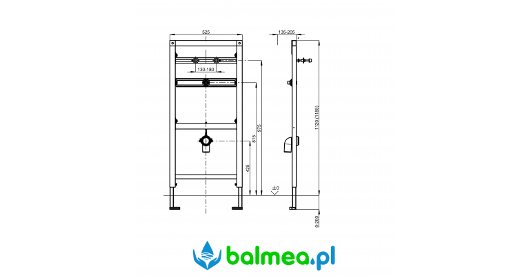 Przy montażu innych pisuarów niż CMPX538 ze stali szlachetnej należy w miejscu zabudowy wyregulować belki poprzeczne stelaża.