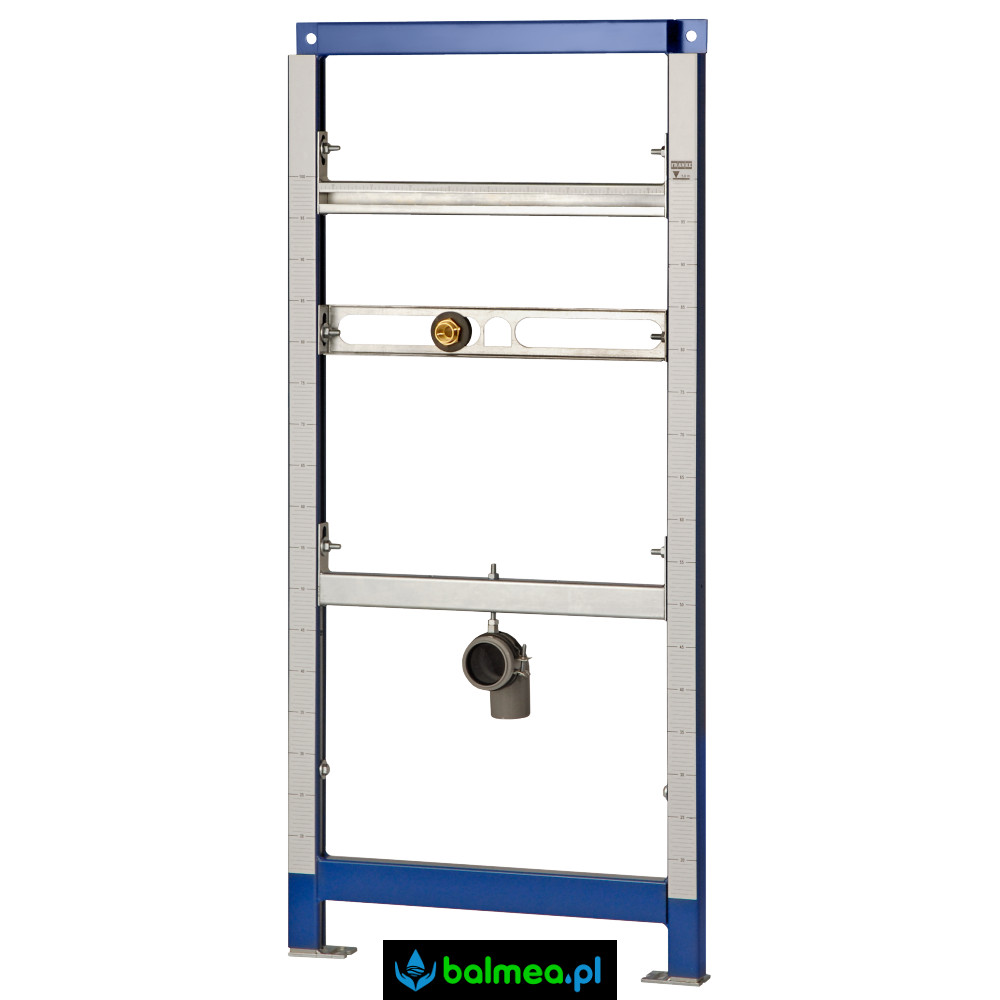Stelaż AQUAFIX podtynkowy do pisuarów Franke do zabudowy w ścianie. Wyposażony w spłuczkę pisuarową montowaną do syfonu. Rama stalowa, samonośna, powlekana proszkowo. Produkt sprawdzony przez niemiecki TÜV. Izolowany akustycznie przepust ścienny G 1/2". Mocowanie pisuaru, przyłącze do armatury i uchwyt do odpływu posiada regulację wysokości - fabrycznie ustawione do pisuaru Franke CMPX538. W skład zestawu wchodzi: uniwersalne kolano odpływowe DN 50, osłony ochronne na czas budowy, zestaw montażowy oraz sworznie do osadzenia pisuaru. Do zabudowy pojedynczej - suchej.