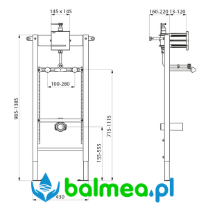 Stelaż ze stali pokrytej czarnym epoksydem, do instalacji podtynkowej. Mocowany do posadzki lub do ściany nośnej dostarczonymi kołkami rozporowymi. Regulacja rozstawu od 95 do 280mm. Regulowana wysokość od 0 do 200 mm. Tuleja odpływu z uszczelką Ø50. Przyłącze z mosiężną złączką 1/2" do pisuarów zasilanych wężykiem. Dostarczany wstępnie zmontowany.