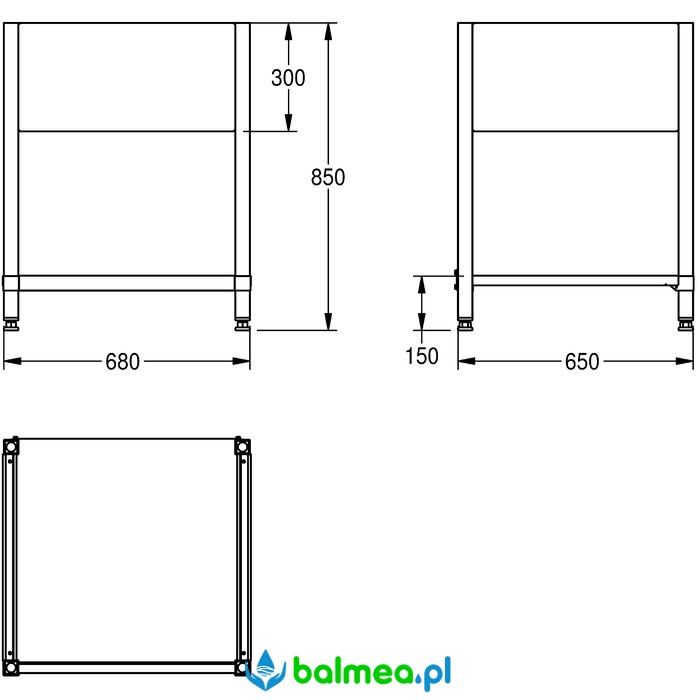 Stelaż stalowy do zamocowania zlewozmywaka przemysłowego o wymiarach 700 × 700 mm