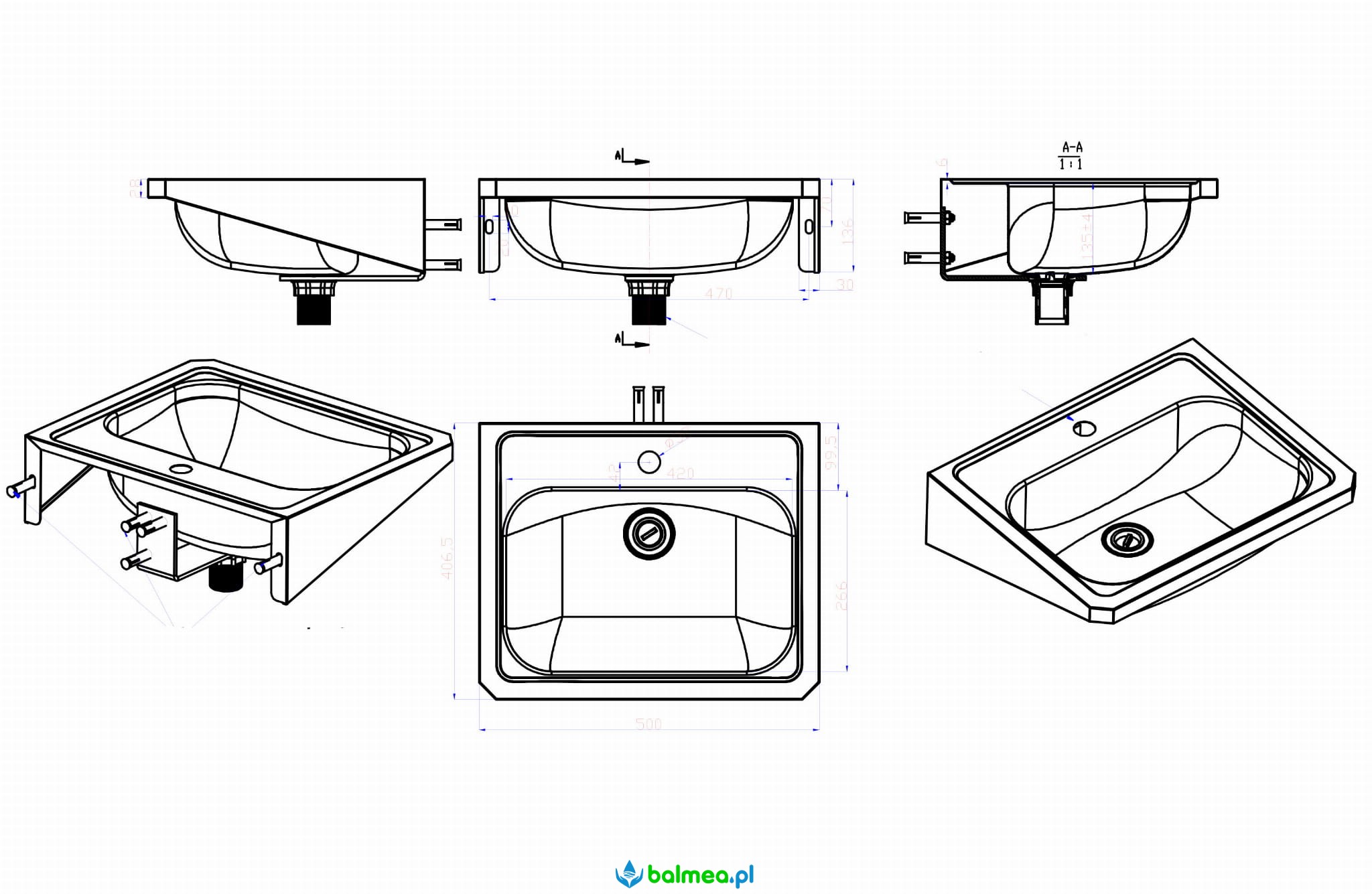 | Wymiary umywalki |