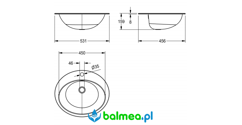 do zabudowy w blacie od spodu lub od góry. Przelew. Wykonana ze stali nierdzewnej w wykończeniu wysoki połysk o grubości 1 mm. Przekątne komory 450 x 330 mm. W zestawie uchwyty do mocowania pod blatem oraz zestaw przelewowy G 1 1/4˝. Z otworem na armaturę. Bez sitka płaskiego i zatyczkowego.