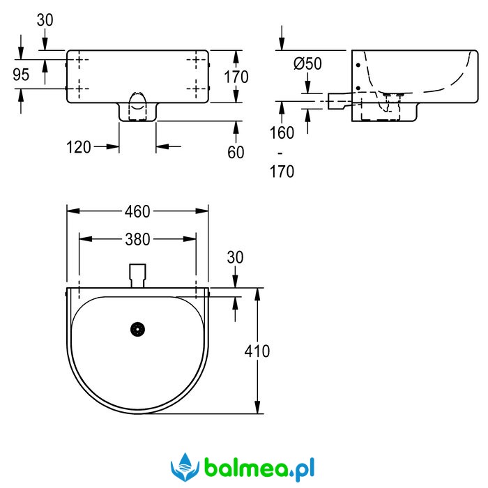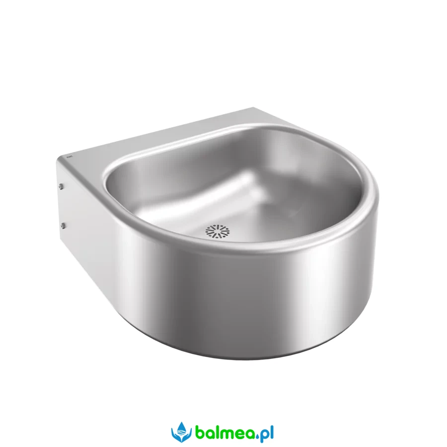 Model bez półki na armaturę, z zaokrąglonymi krawędziami zwiększającymi bezpieczeństwo użytkowania. Konstrukcja wandaloodporna, dedykowana do obiektów o intensywnej eksploatacji. Umywalka wyposażona w odpływ sitkowy z syfonem DN 40/50, bez przelewu. Mocowanie od przodu ułatwia montaż i serwis.