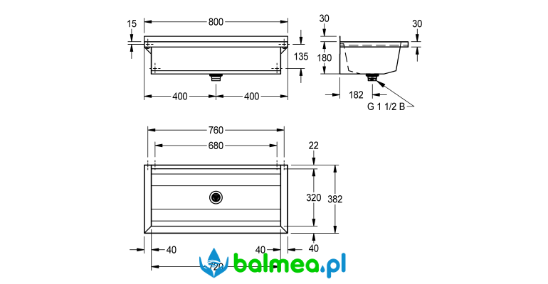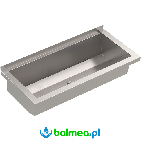 do montażu ściennego. Wykonana ze stali szlachetnej chromowo-niklowej o wykończeniu matowym. Grubość materiału umywalki 0,8 mm, ścianek bocznych 1,2 mm. Spawana bezspoinowo. Ścianki boczne ze zintegrowanymi wspornikami ściennymi. Bez półki na armaturę i bez przelewu. Listwa tylna 30 mm. Centralny odpływ, zawór sitkowy G 1 1/2B. W zestawie materiały montażowe.