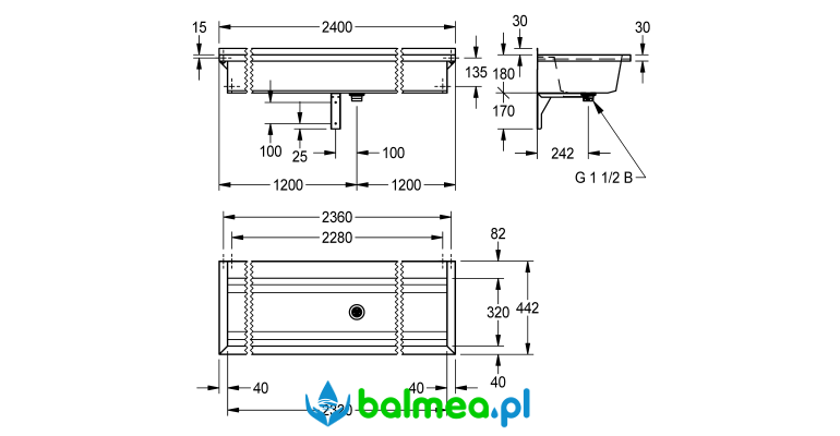Umywalka zbiorowa ze stali nierdzewnej z półką na armaturę FRANKE PLANOX 240cm