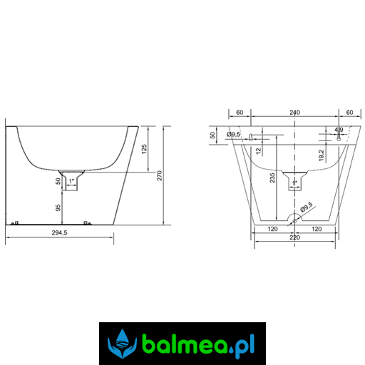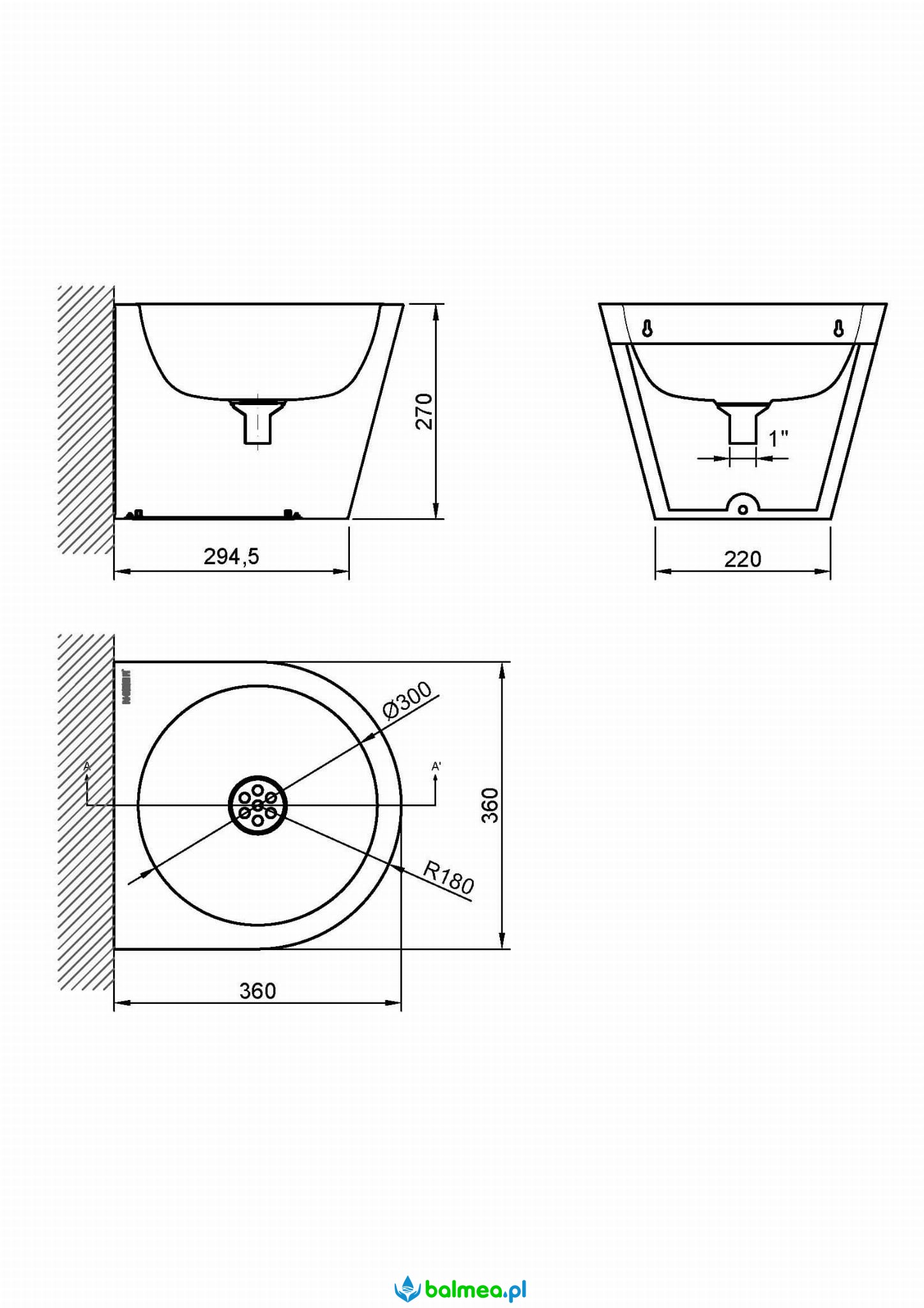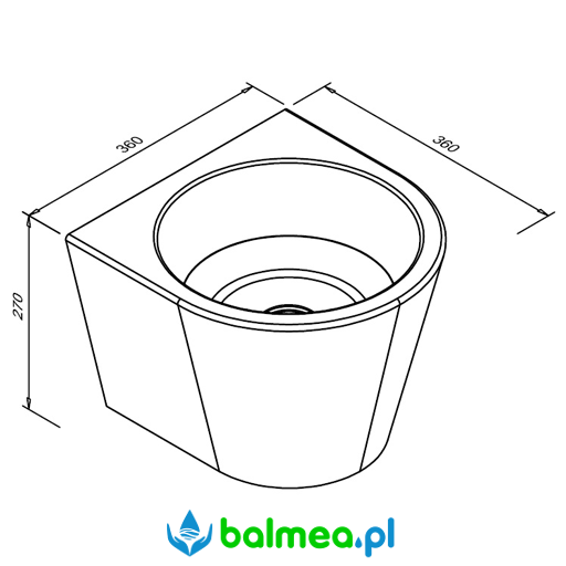 | Wymiary umywalki | Wysokość 270 mm, szerokość 360 mm, głębokość 360 mm, średnica Ø 300 mm |