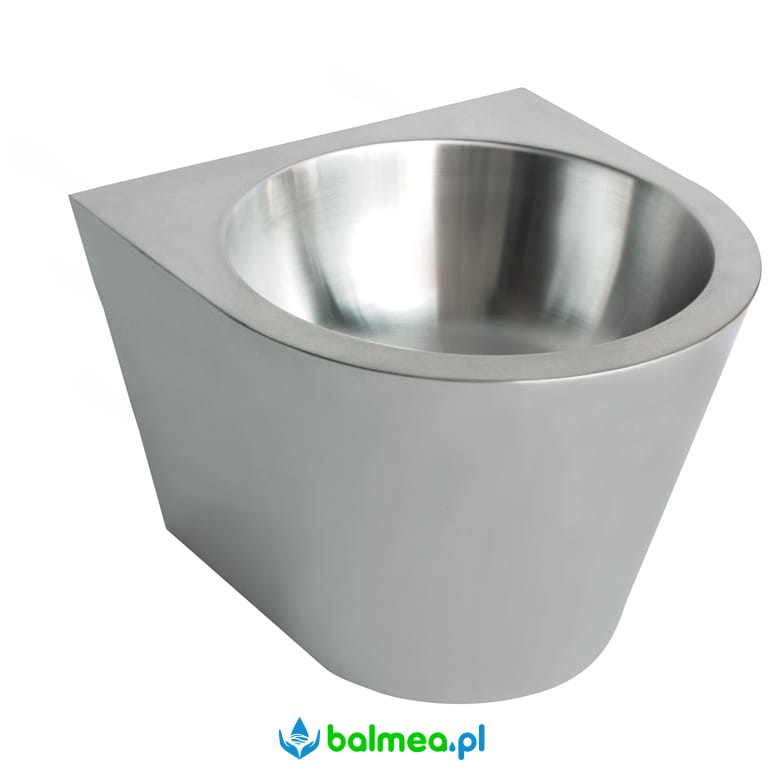 Umywalka o podwyższonej odporności na uszkodzenia mechaniczne i akty wandalizmu. Wykonana ze stali szlachetnej nierdzewnej o grubości 1 mm w wykończeniu matowym. Do zastosowania z baterią ścienna lub sztorcową. W standardzie nie ma otworu na baterię ani syfonu. Sitko odpływowe zintegrowane z niecką umywalki, bez możliwości demontażu. Odpływ 1".