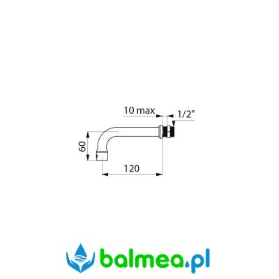 Zagięta wylewka z rurą Ø18 i przyłączem Z½", przeznaczona do montażu w systemach umywalkowych, w tym do instalacji w płytach o grubości do 10 mm.