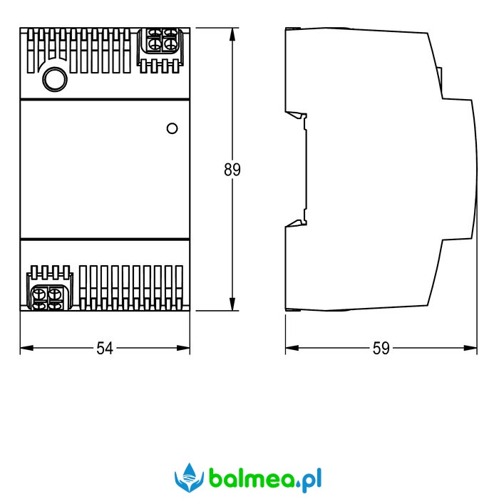 Zasilacz ASEX1031 przeznaczony do montażu na szynie montażowej TS35, służy do zasilania armatur AQUA 3000 open przy maksymalnej długości kabla 100 m.