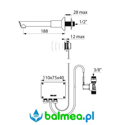 Urządzenie posiada niezależną skrzynkę elektroniczną o stopniu ochrony IP65 oraz zasilanie sieciowe poprzez transformator 230/12 V. Detekcja obecności odbywa się za pomocą odpornego na uderzenia sensora na podczerwień zamocowanego na płycie, z podstawą Ø60 wykonaną z chromowanego mosiądzu. Wylewka i podstawa mają gładkie wnętrze, co ogranicza powstawanie nisz bakteryjnych.