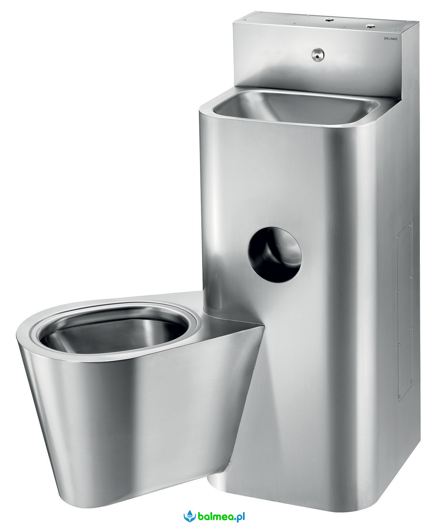WC jest całkowicie przyspawane do umywalki, brak śrub: ułatwia to czyszczenie i zapobiega ukrywaniu przedmiotów.