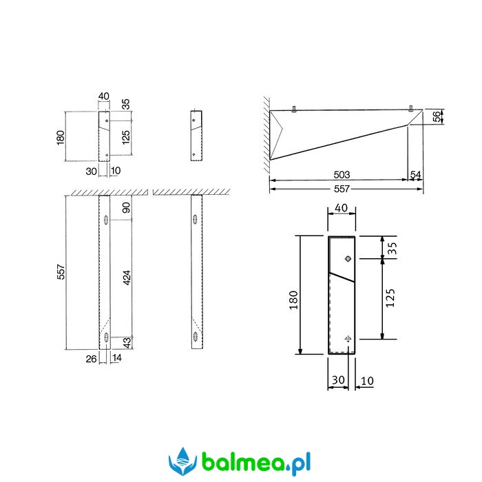 Wymiary: 40 x 180 x 557 mm (szer. x wys. x głęb.)